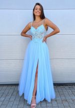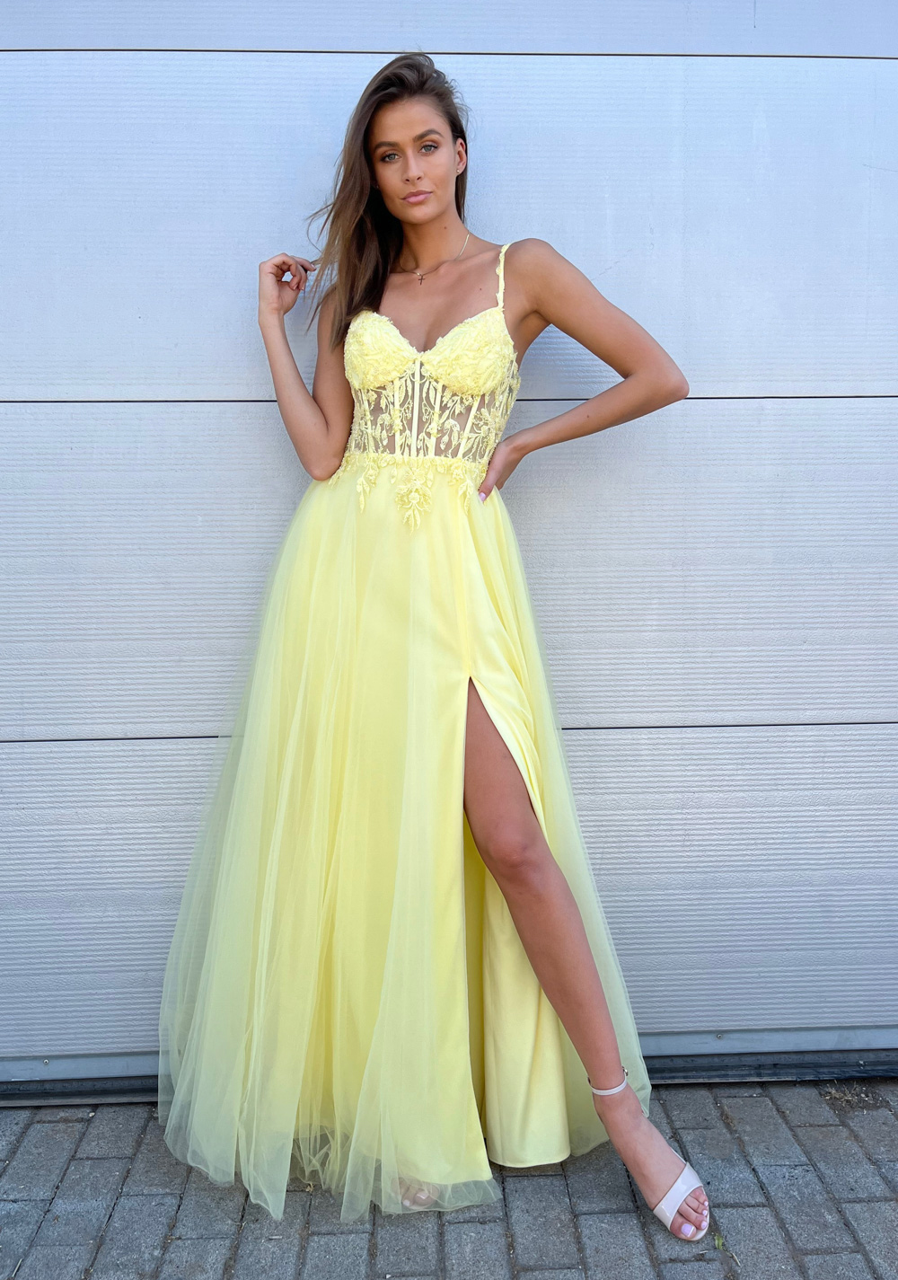 En lång balklänning av Robert Lindqvist med slits