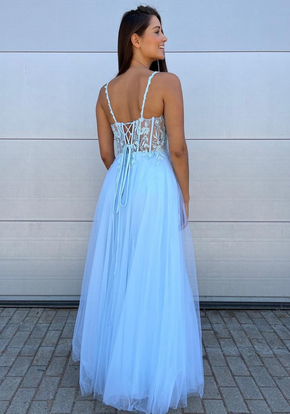Har en korsett liknande modell som dras åt på baksidan med hjälp av snören för bättre passform.